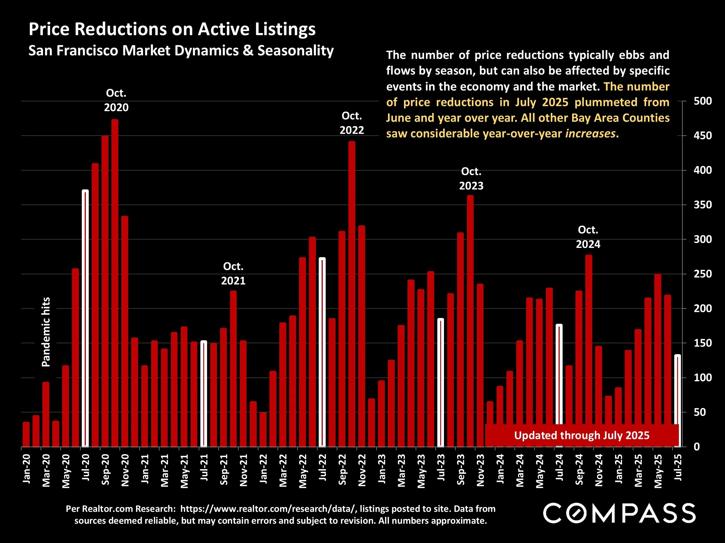 The number of price reductions in July 2025 plummeted from June and year over year. All other Bay Area Counties saw considerable year-over-year increases.