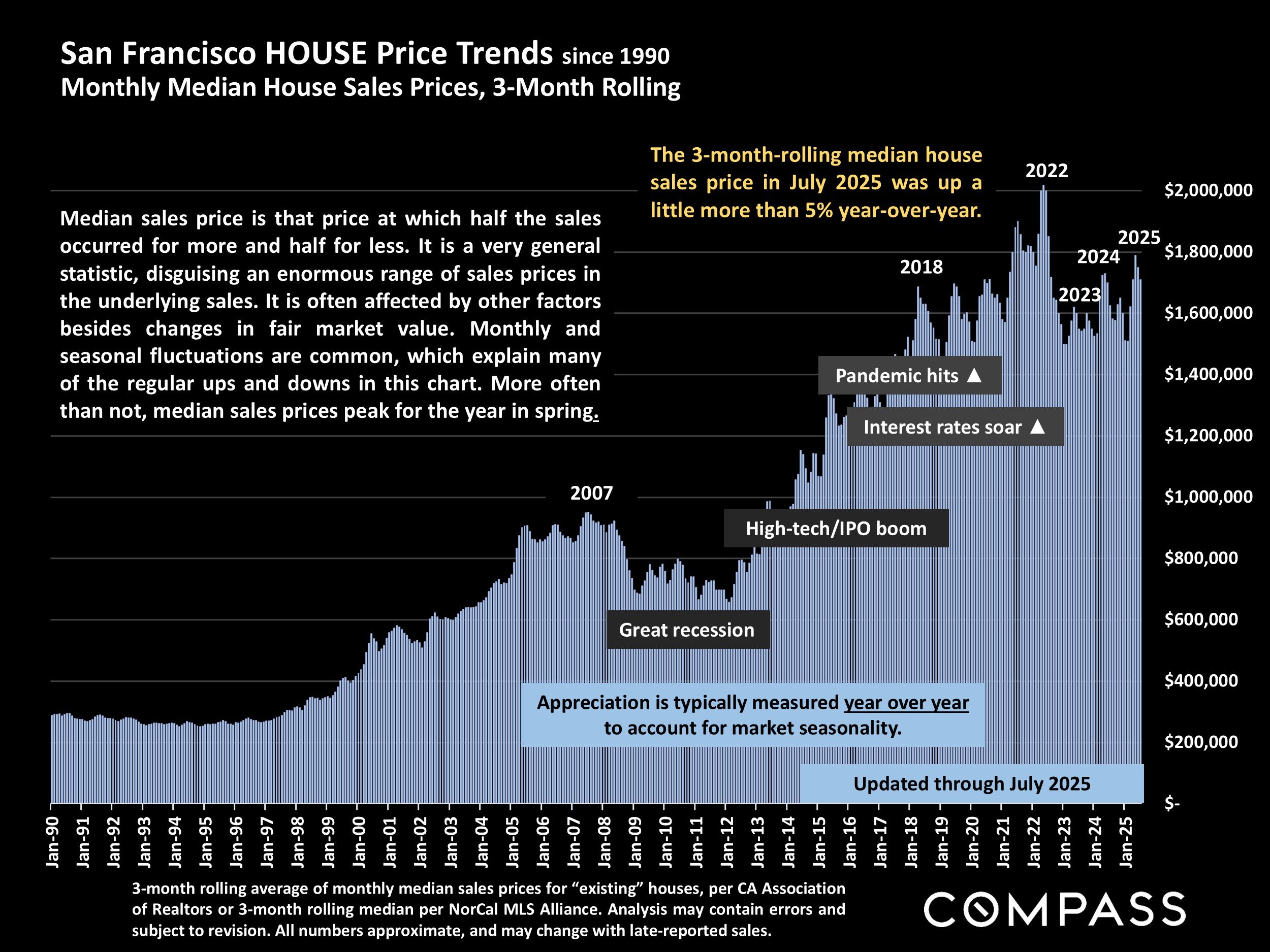 *3-month-rolling sales reported to NorCal MLS Alliance by August 5, 2025, per Infosparks. Data from sources deemed reliable, but may contain errors and subject to revision. All numbers are approximate and late-reported sales may change prices and appreciation rates.