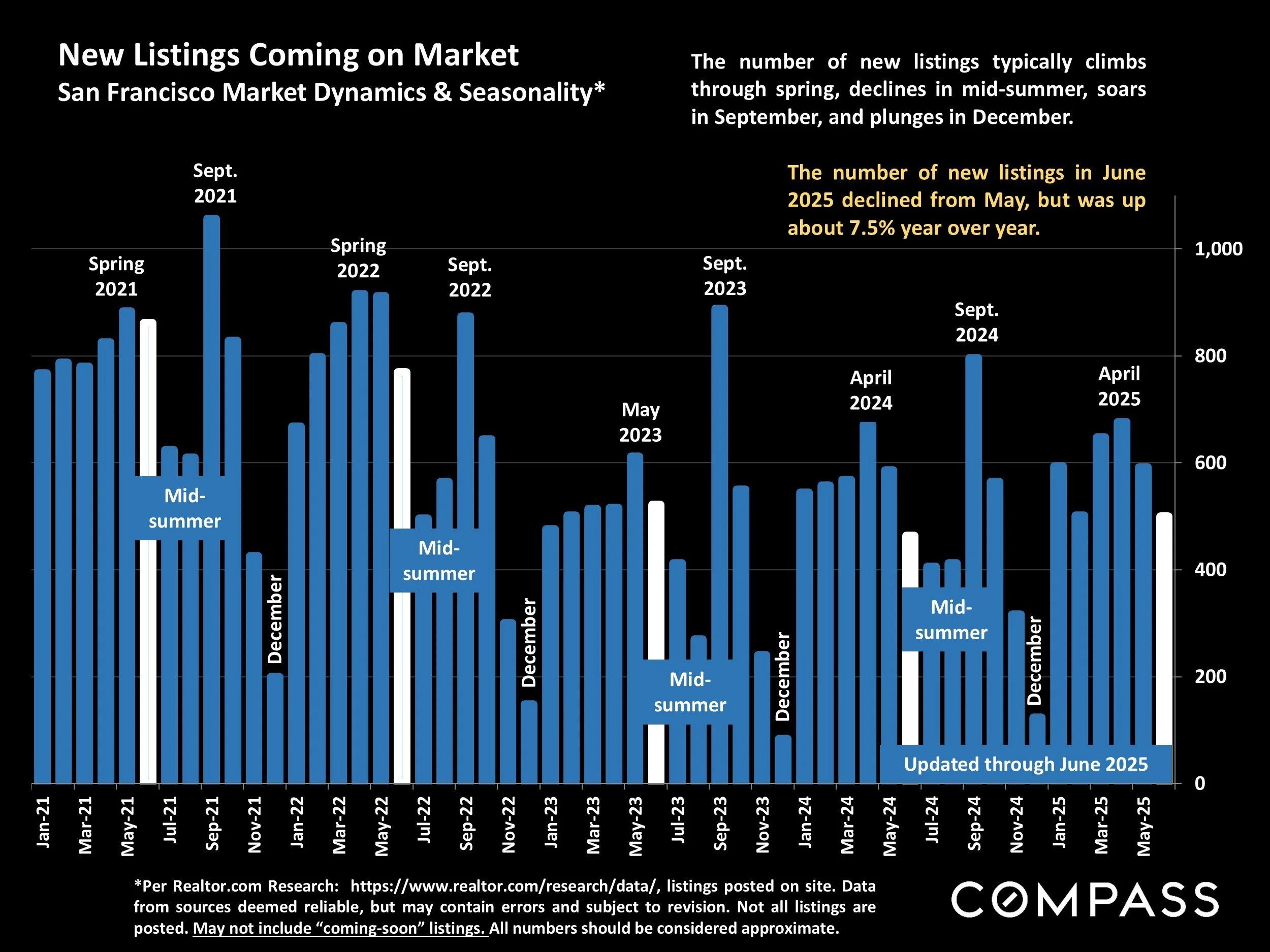 The number of new listings in June 2025 declined from May, but was up about 7.5% year over year.