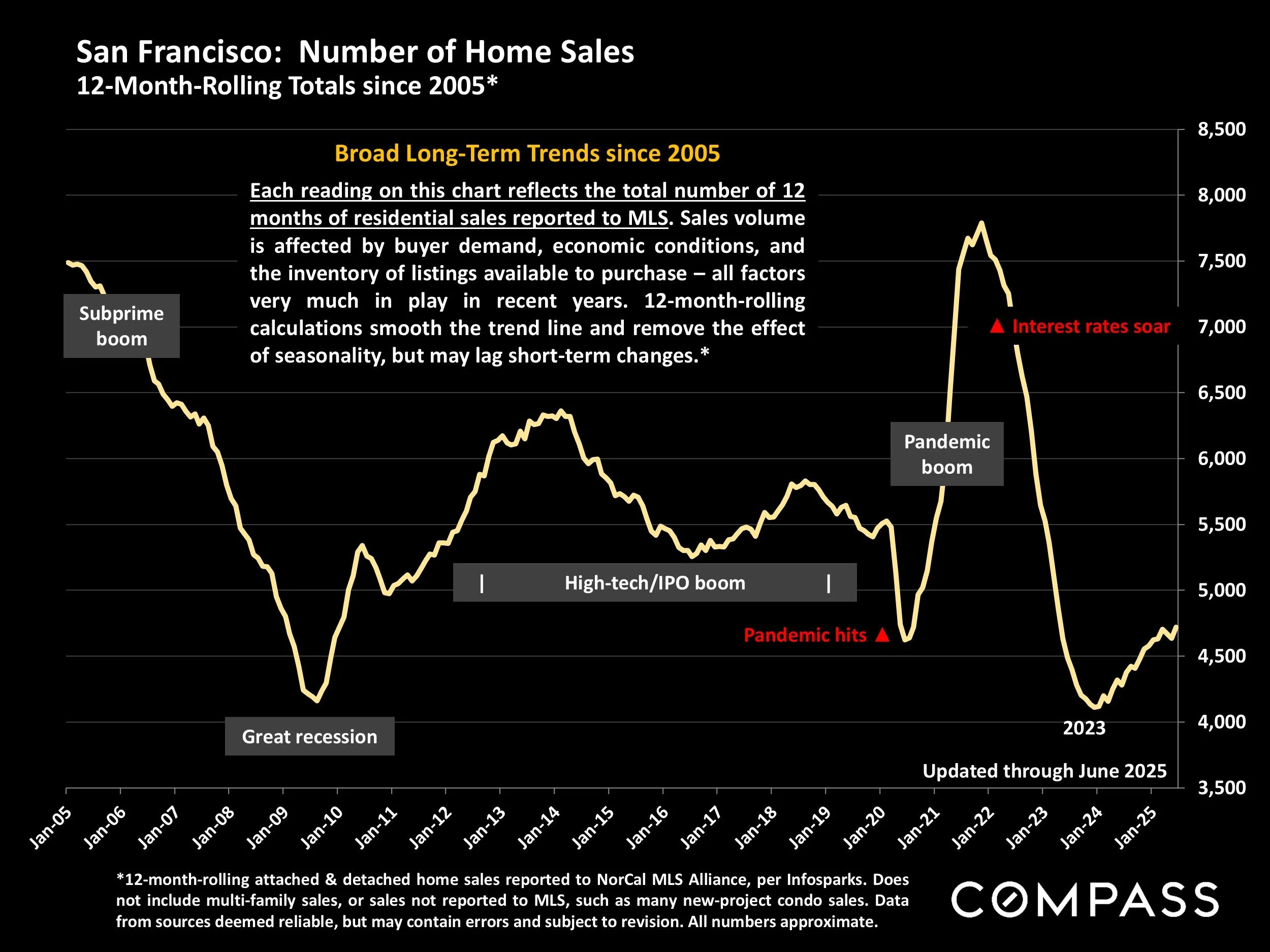 *12-month-rolling attached & detached home sales reported to NorCal MLS Alliance, per Infosparks. Does not include multi-family sales, or sales not reported to MLS, such as many new-project condo sales. Data from sources deemed reliable, but may contain errors and subject to revision. All numbers approximate.