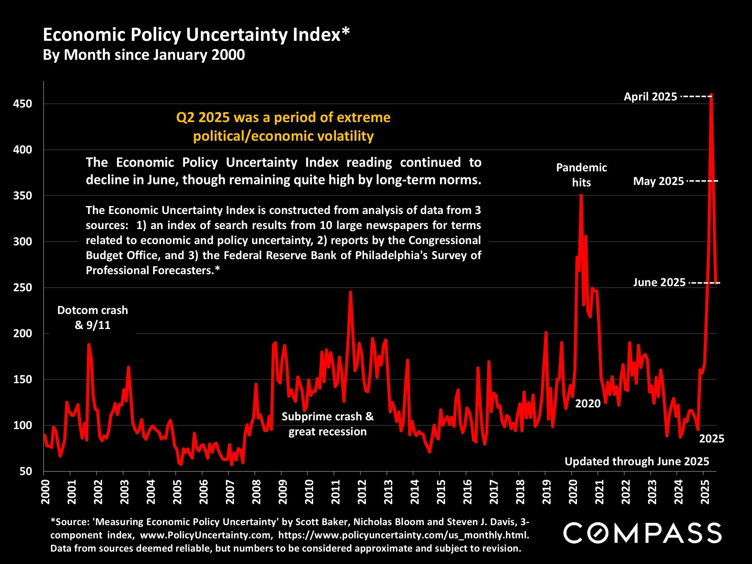 *Source: 'Measuring Economic Policy Uncertainty' by Scott Baker, Nicholas Bloom and Steven J. Davis, 3-component index, www.PolicyUncertainty.com, https://www.policyuncertainty.com/us_monthly.html. Data from sources deemed reliable, but numbers to be considered approximate and subject to revision.
