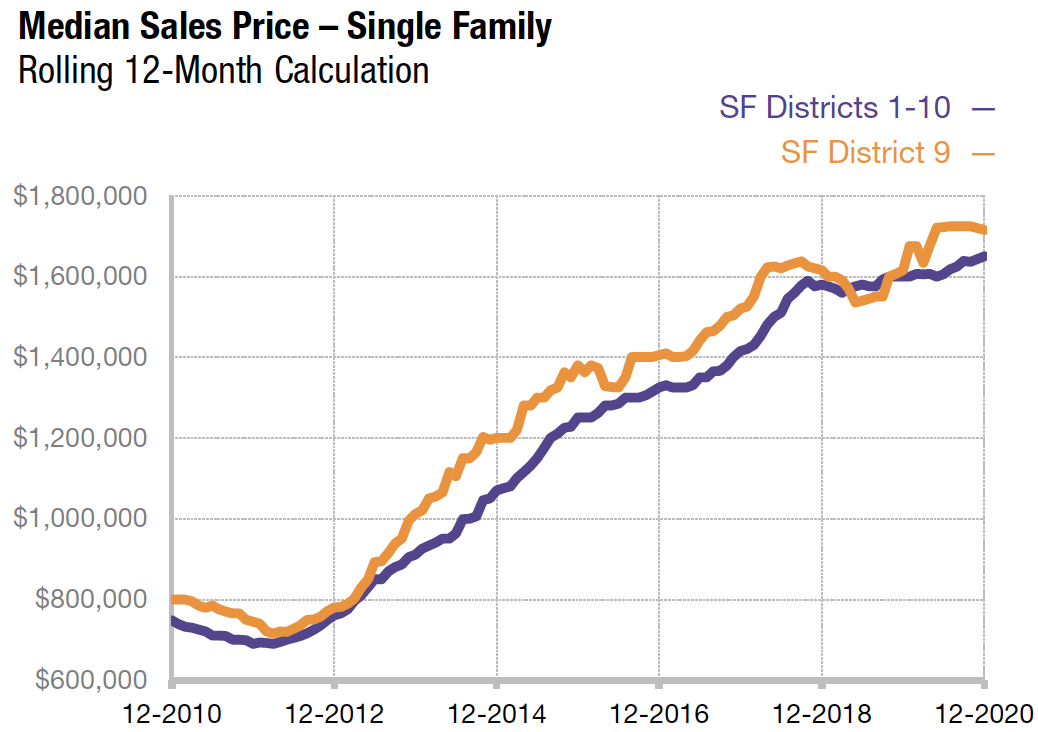 These analyses were made in good faith with data from sources deemed reliable, but may contain errors and are subject to revision. It is not our intent to convince you of a particular position, but to attempt to provide straightforward data and analysis, so you can make your own informed decisions. Median and average statistics are enormous generalities: There are hundreds of different markets in San Francisco and the Bay Area, each with its own unique dynamics. Median prices and average dollar per square foot values can be and often are affected by other factors besides changes in fair market value. Longer term trends are much more meaningful than short-term.