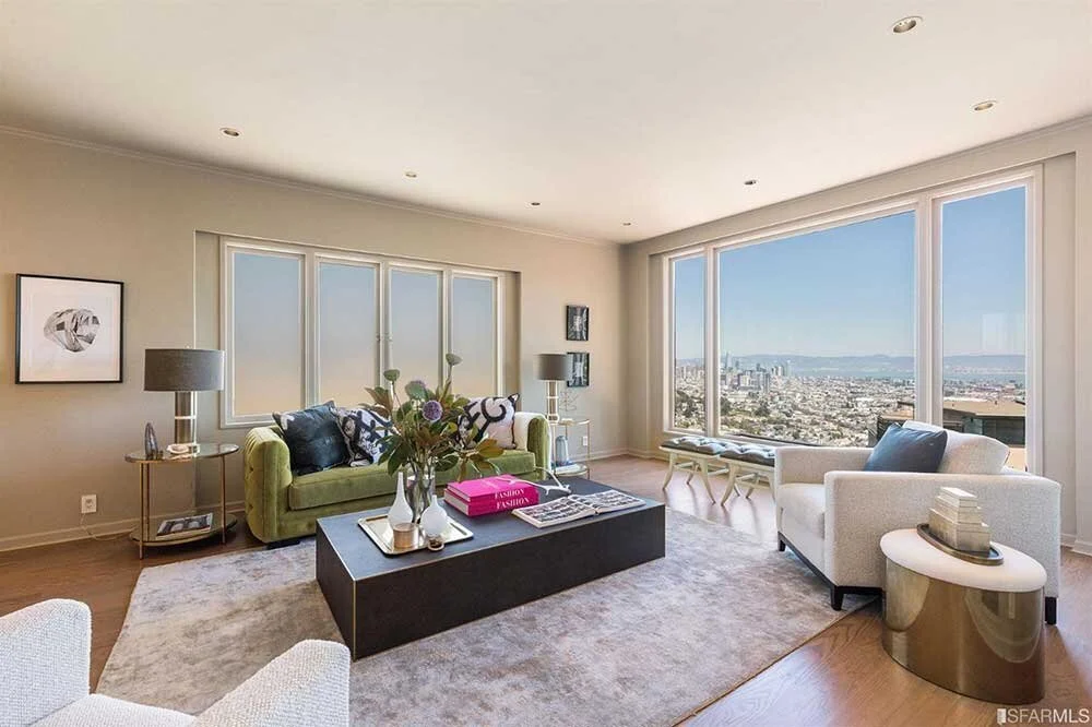 Congratulations to my client for landing this stunning 4BR/3.5BA Mid-Century home on Twin Peaks with expansive views to the San Francisco skyline and Bay. Fabulous kitchen opening to a vine covered patio, media/family room, luxurious view master suite up or lower level master suite or guest suite, 2 car side by side garage. Lush, mature landscaping, recently refinished hardwood floors, fresh paint throughout and cosmetic kitchen updating. And did I mention views?