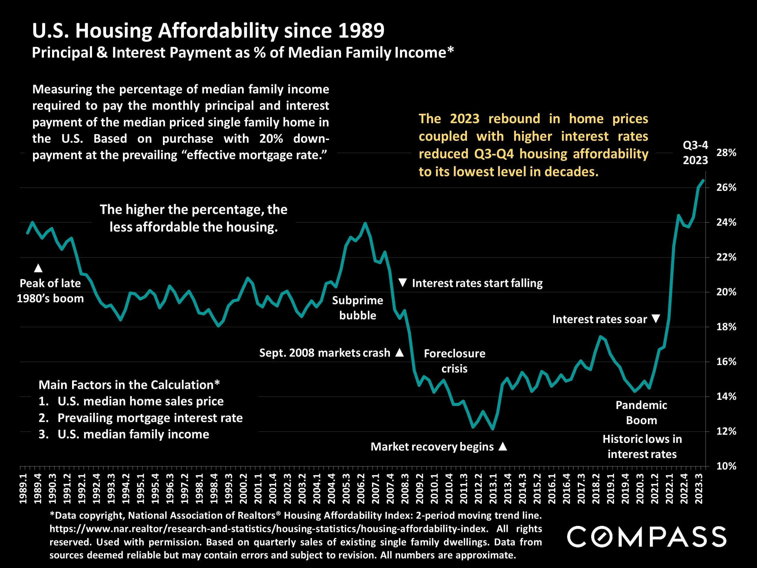 The 2023 rebound in home prices coupled with higher interest rates reduced Q3-Q4 housing affordability to its lowest level in decades.